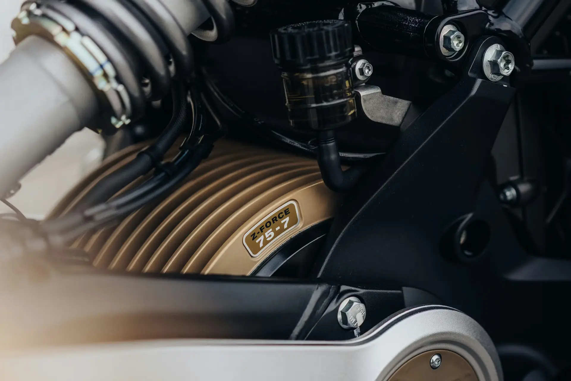 Ο νέος κινητήρας Z-Force 75-7 αποτελεί την πιο πρόσφατη εξέλιξη στη μακρά πορεία της Zero σε αποδοτικούς, αερόψυκτους, AC κινητήρες με εσωτερικούς μόνιμους μαγνήτες. Διατηρεί το εξωτερικό περίβλημα του ισχυρού SR/F για ταχύτερη απαγωγή θερμότητας, αλλά διαθέτει διαφορετική εσωτερική αρχιτεκτονική που μεγιστοποιεί την απόδοση και μειώνει σημαντικά το βάρος. Το αποτέλεσμα είναι χαμηλότερο κόστος και κορυφαία απόδοση στην κατηγορία των naked ηλεκτρικών μοτοσυκλετών.